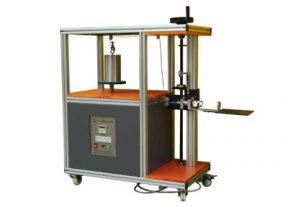 插头线突拉试验机是用来测试插头刃与导线之接合强度及导线之抗拉强度。将插头固定于插座内,导线尾端连结锤杆,用冲击砝码进行突拉测试。之后吊上砝码进行回转试验及E极(接地极)耐电流试验。